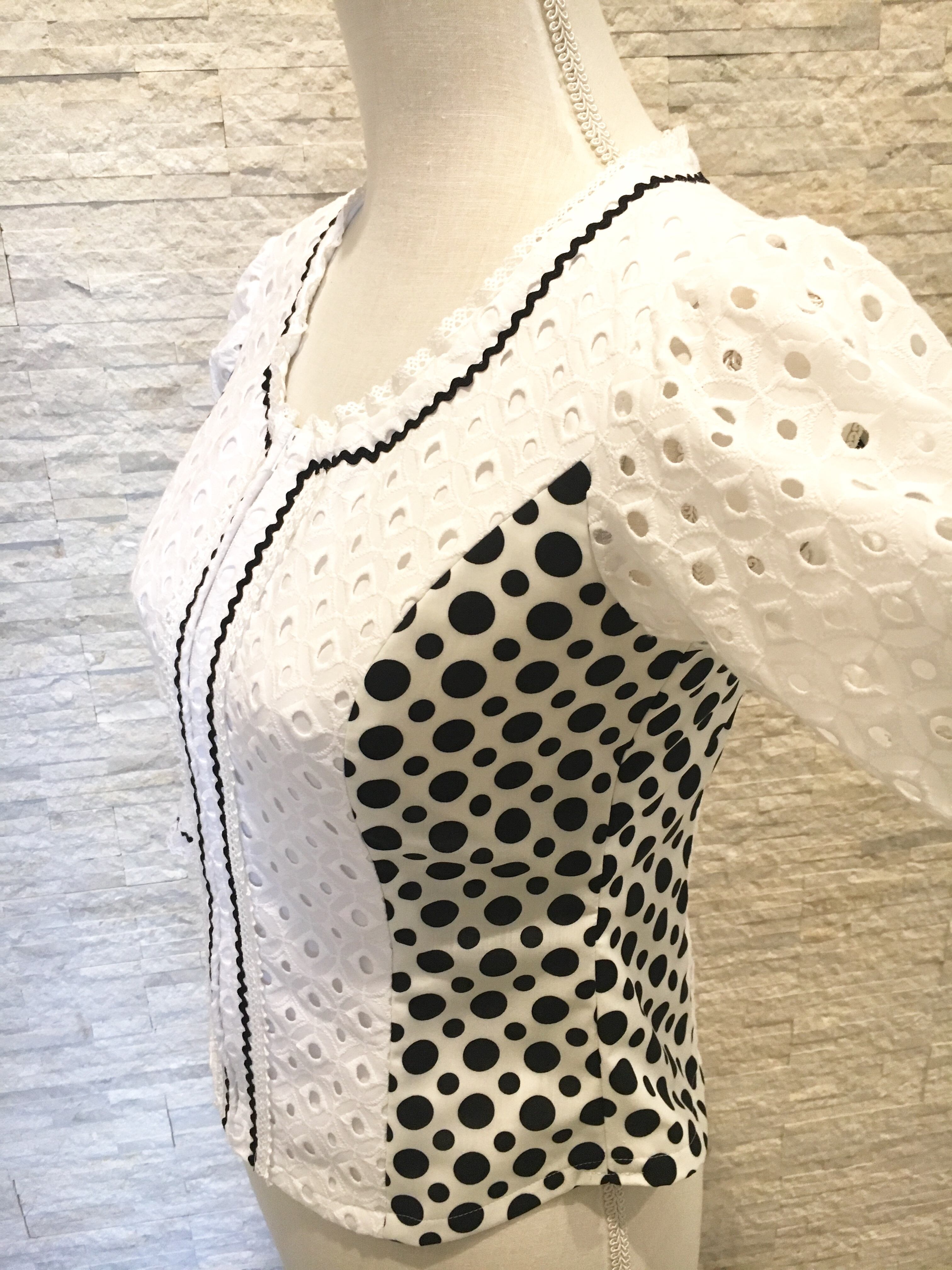 見頃は、白色綿レース生地とポリエステル水玉生地の切り替えになっています。