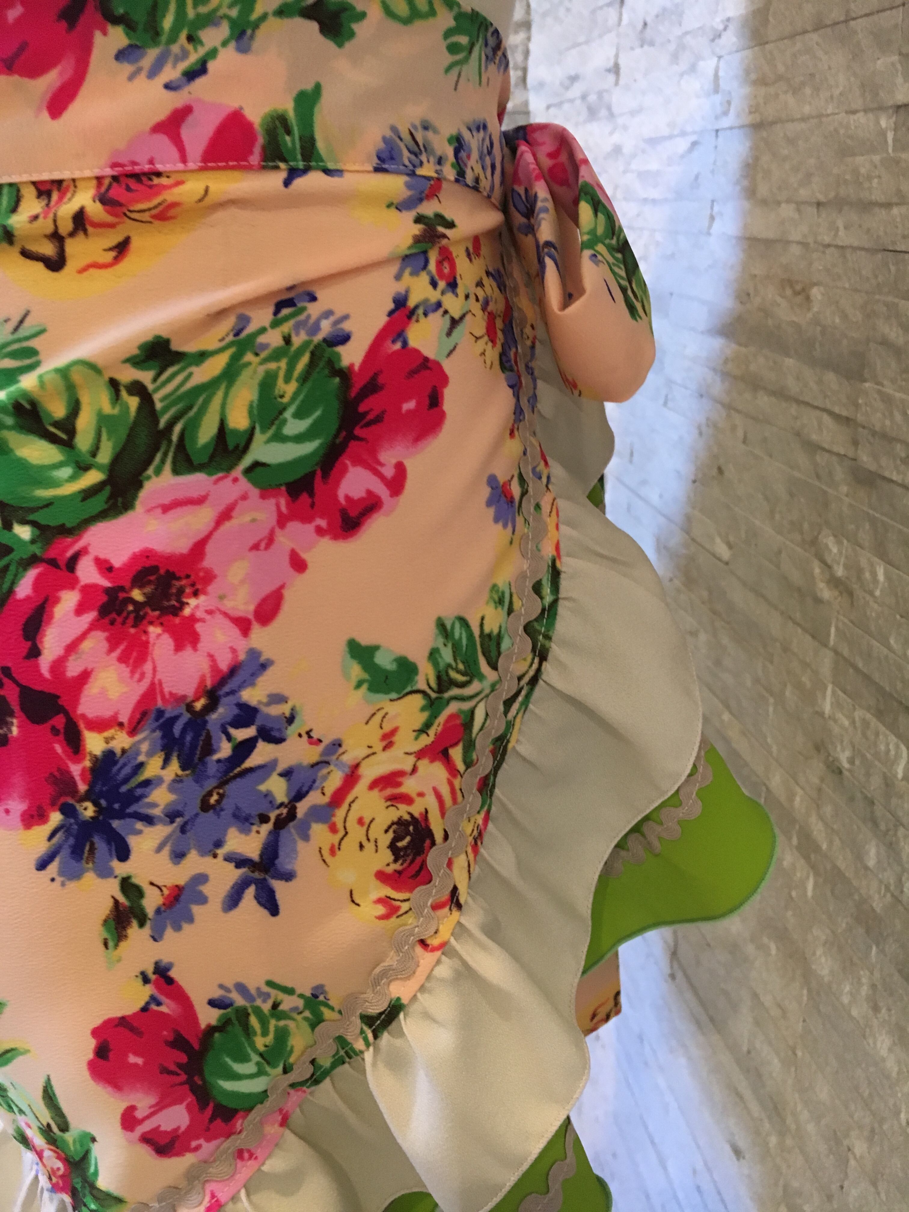 スペイン製の生地です。フリルは2段フリルで日本製とスペイン製の生地です。
