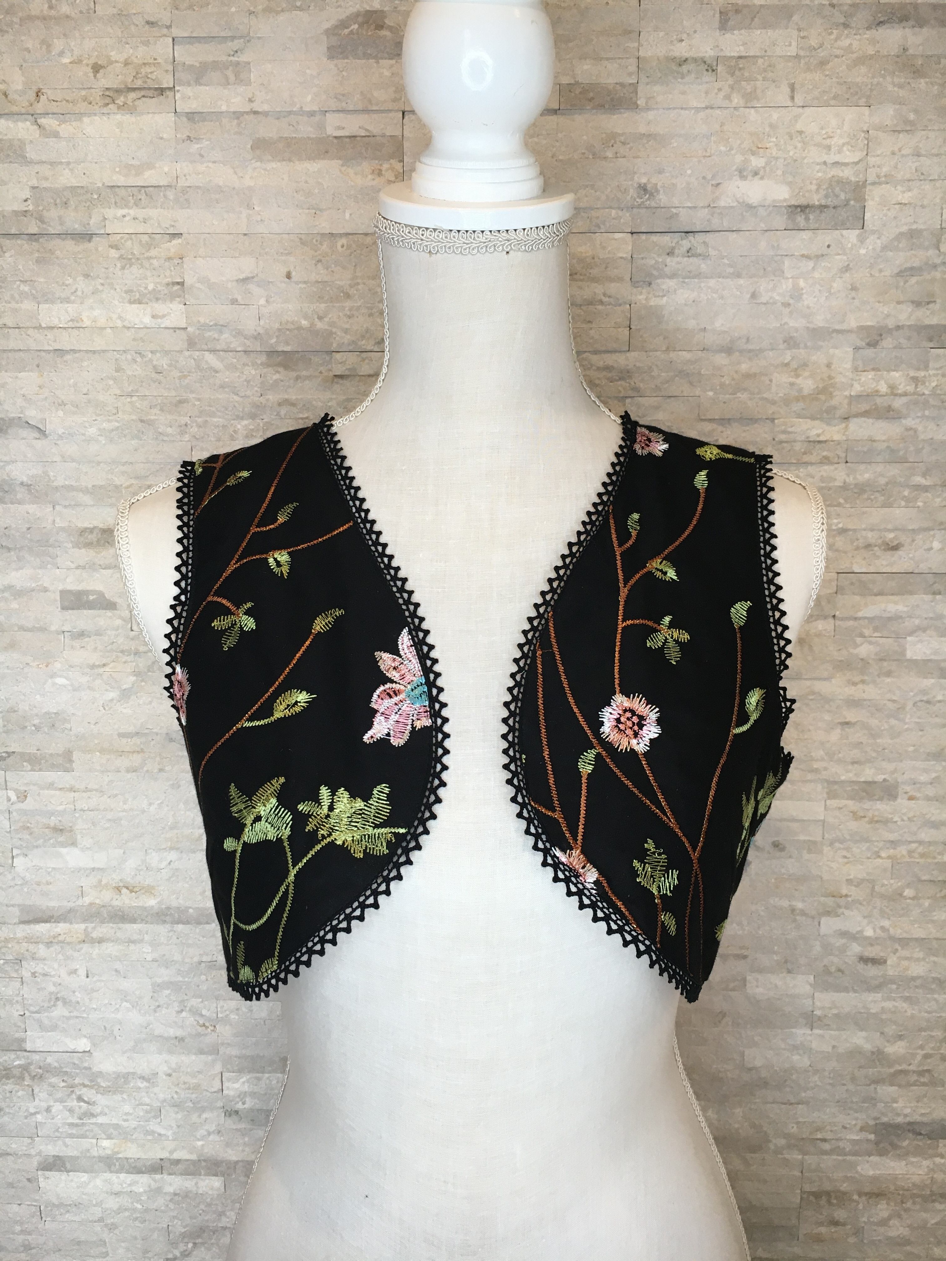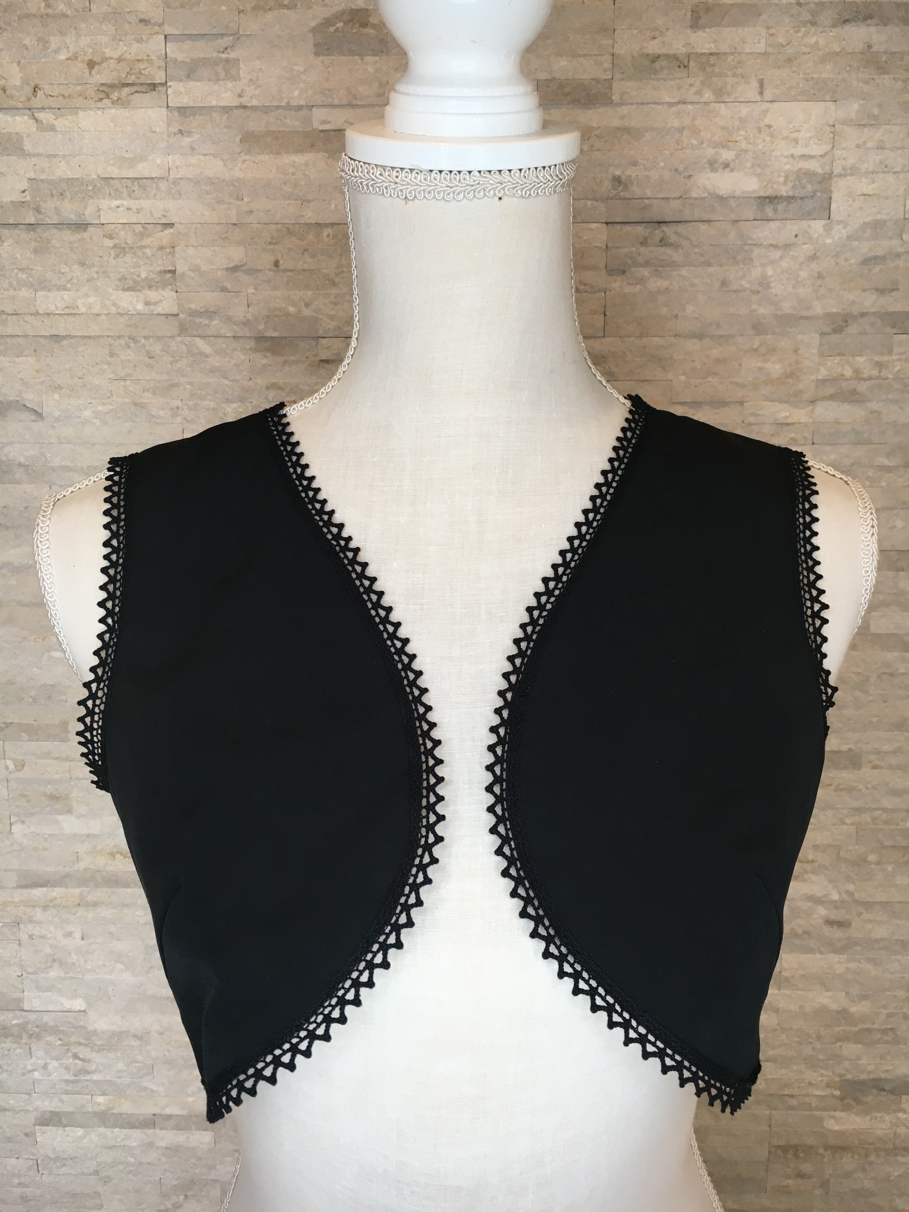 こちらのベストは、黒色サークルレース生地のベストよりも、着丈が少し短めのデザインです。