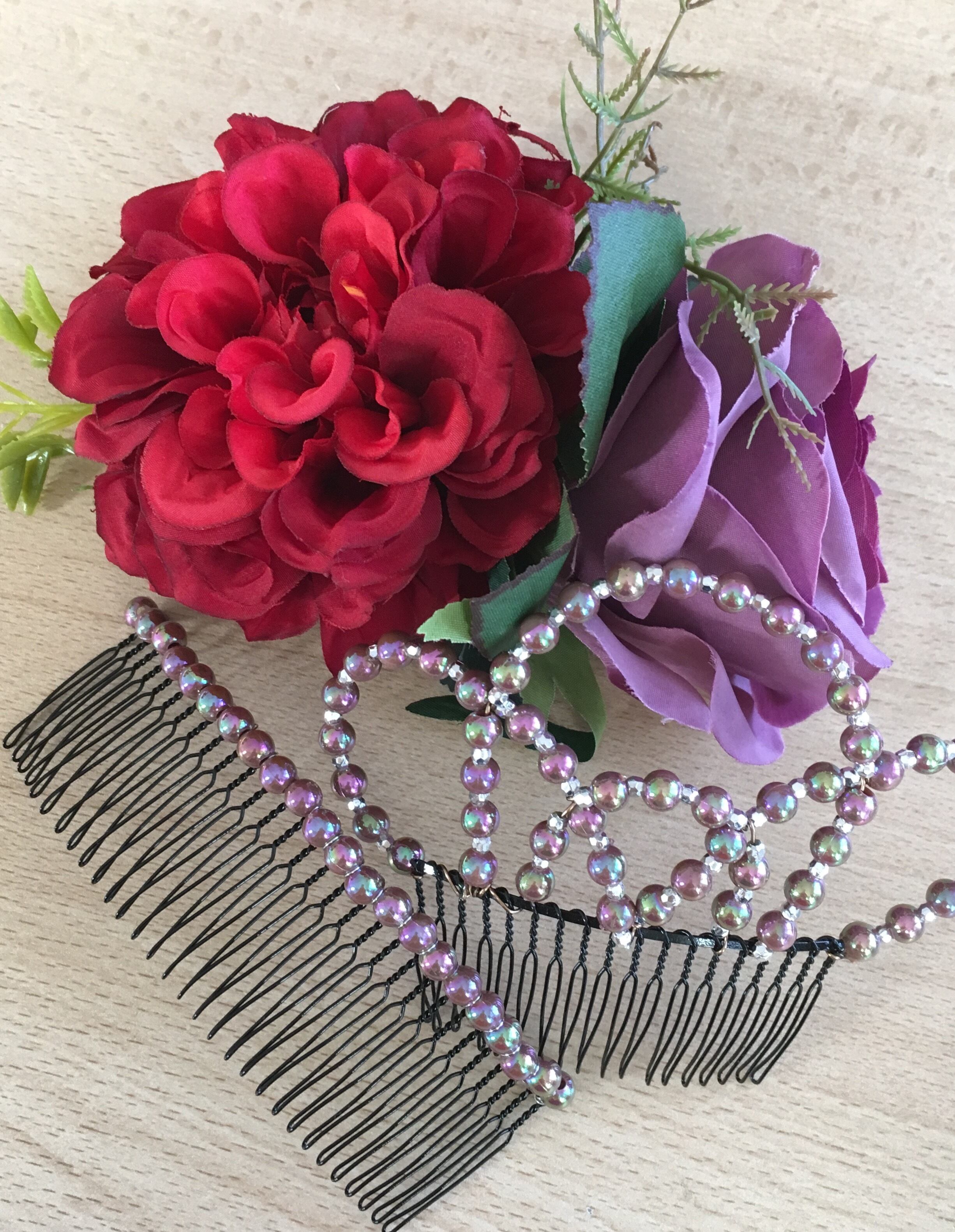 2つのお花を組んで、その隙間に葉っぱや小花をちらせました。
