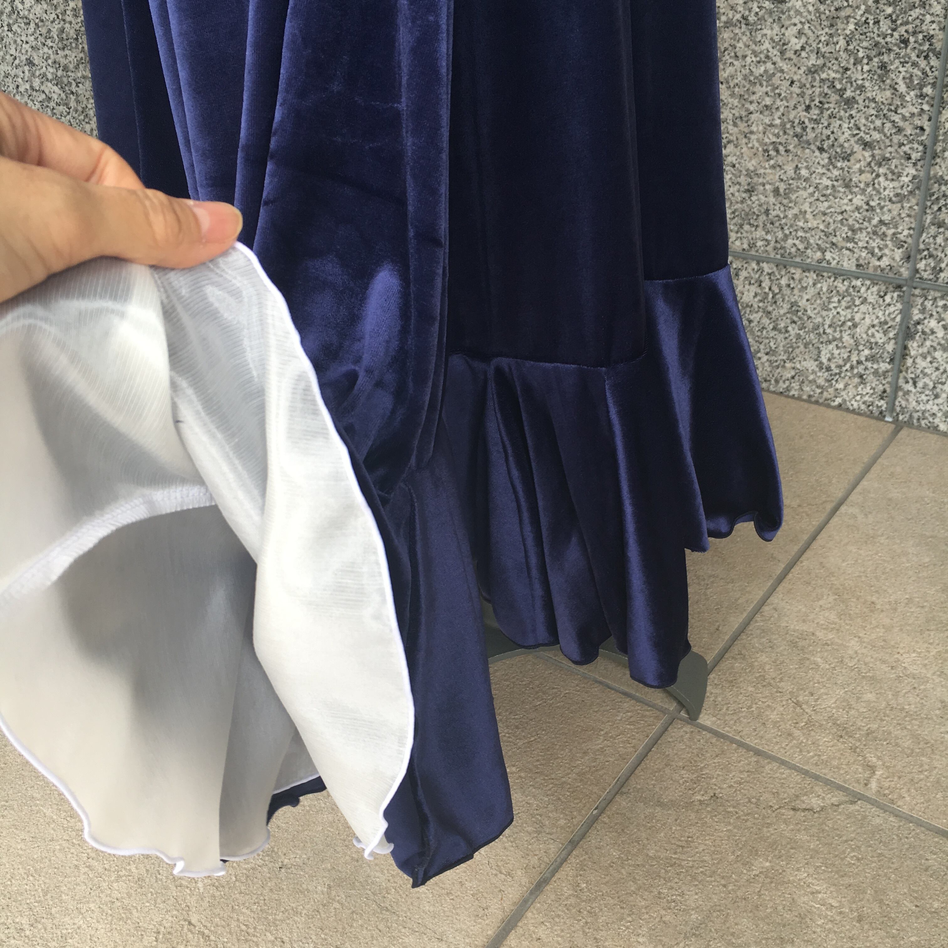 裾に1段フリル付き、フリルの裏側に白い生地で重ねてありますので、踊った時に白色が見えてとても綺麗ですよ!