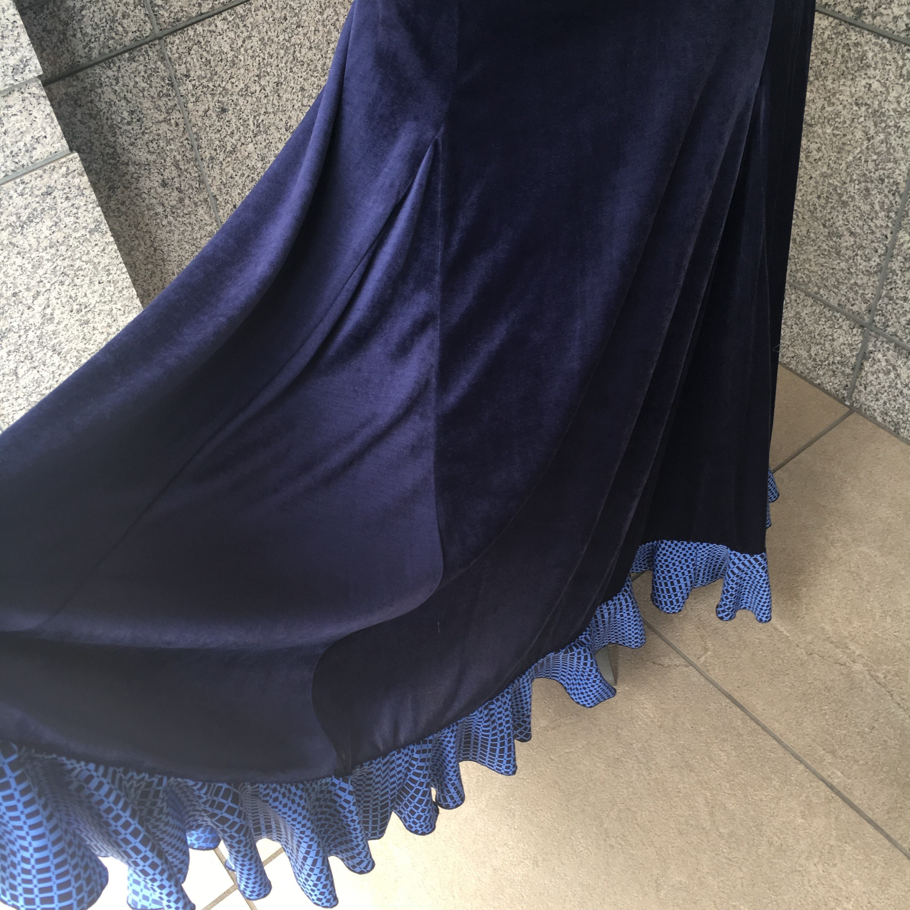 紺色のストレッチベロアのファルダです。